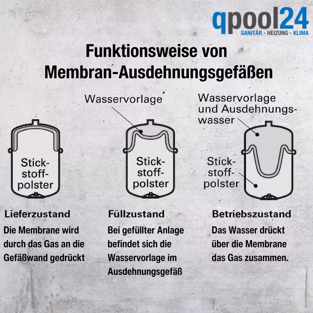 Aber: Der Heizungsbauer ist für die richtige Auslegung des Heizsystems und die Größe des Ausdehnungsgefäßes verantwortlich. Bitte beachten Sie immer die Herstellerangaben, damit das System einwandfrei funktioniert.