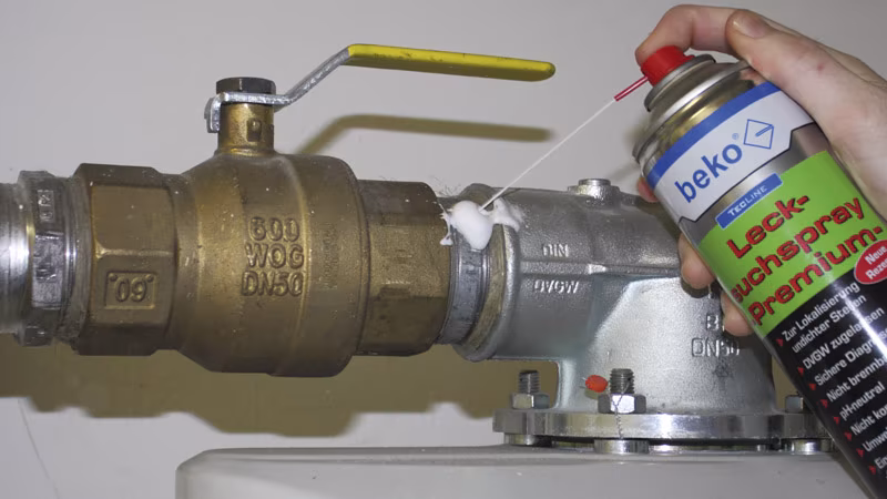 Zur Lokalisierung undichter Stellen durch Blasenbildung, nicht brennbar, erfüllt die DIN EN 14291, pH-neutral, nicht korrosiv, umweltfreundlich, Einsatz von -15° C bis +50° C, 24 Monate lagerstabil, mit 360°-Ventiltechnik