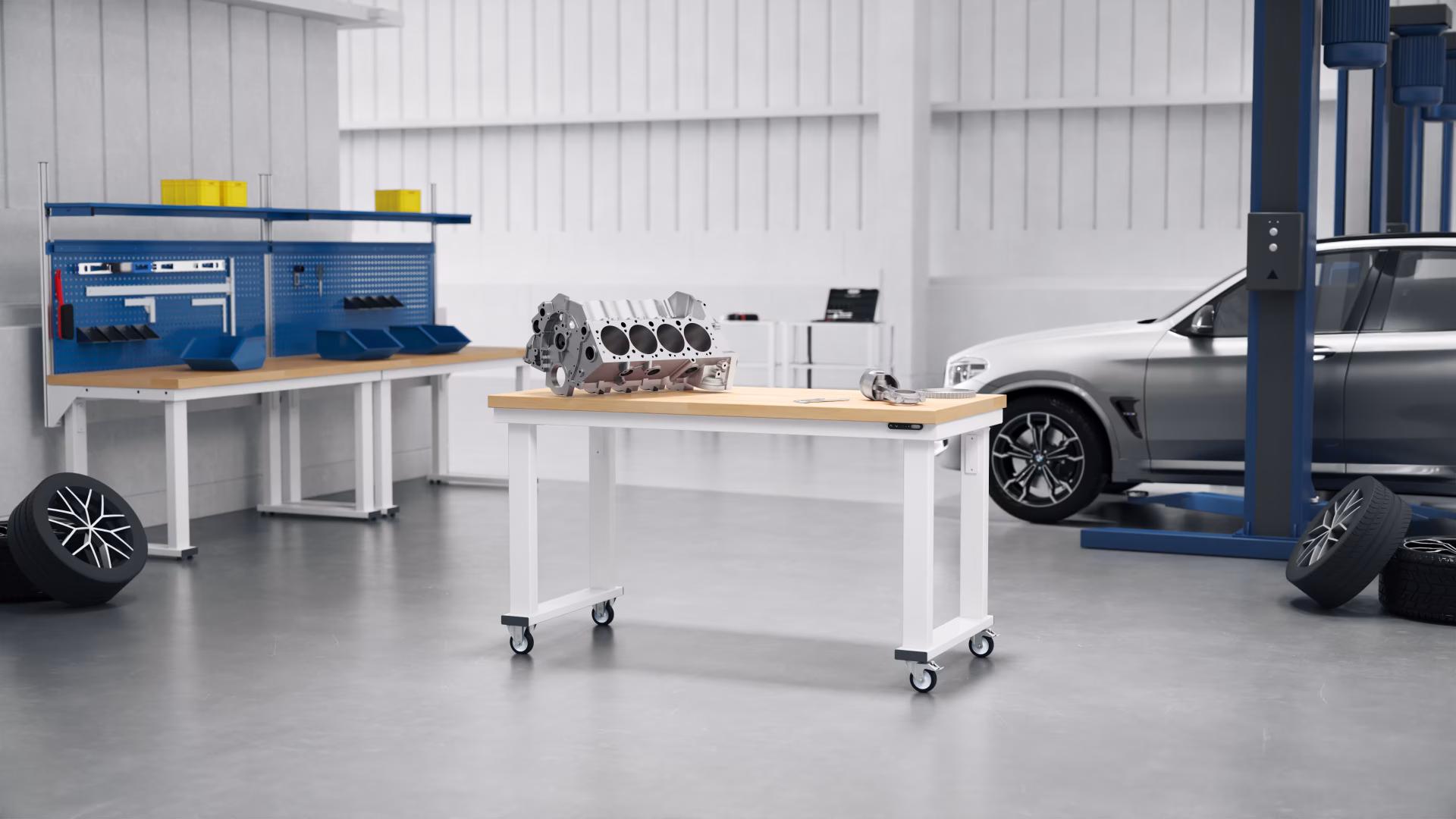 Werkbank elektrisch höhenverstellbar, B750xT700xH740-1140mm, Buche-Massiv-Platte-40 mm